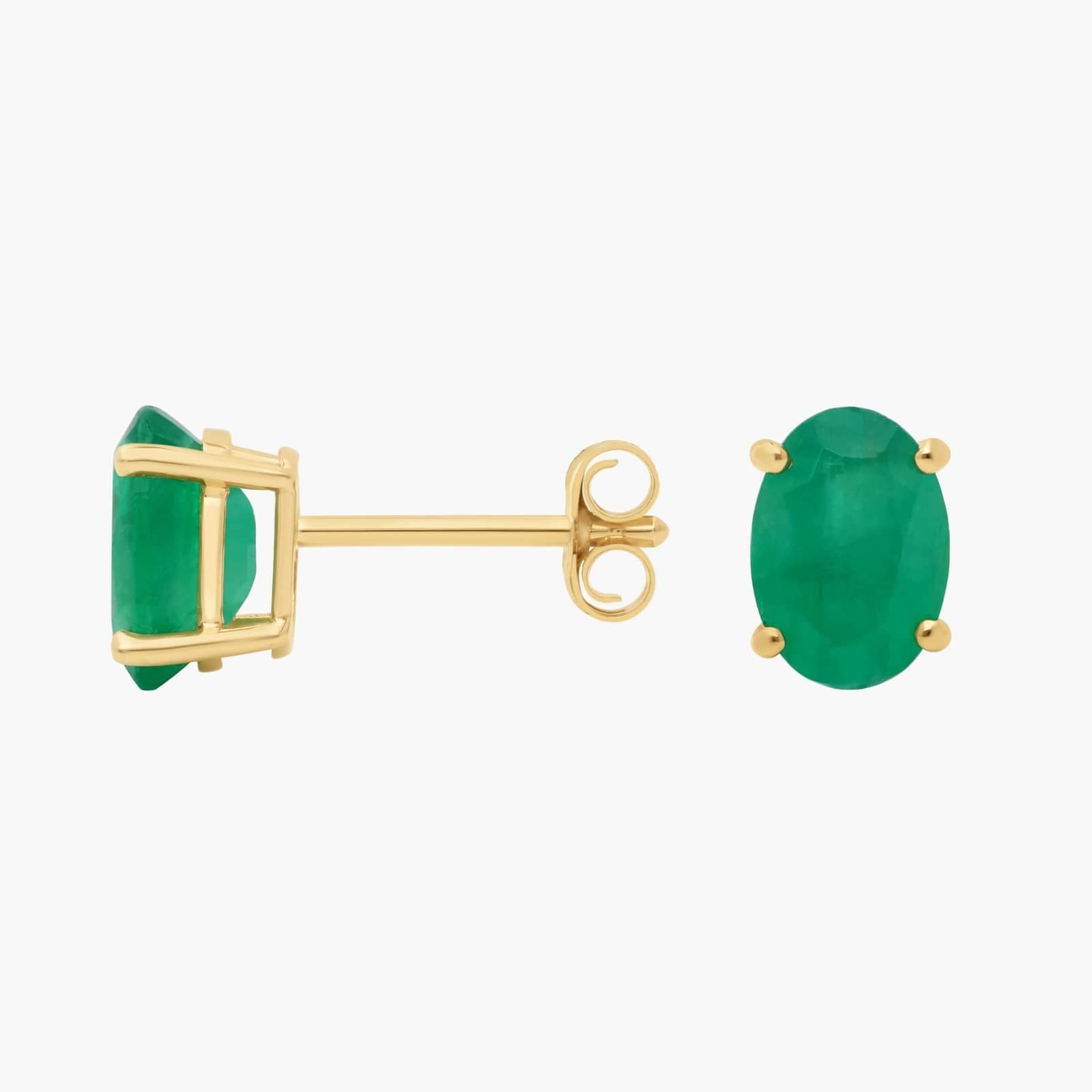 These gold stud earrings featuring oval Colombian emerald add an elegant and refined accent to both daytime and evening wear.