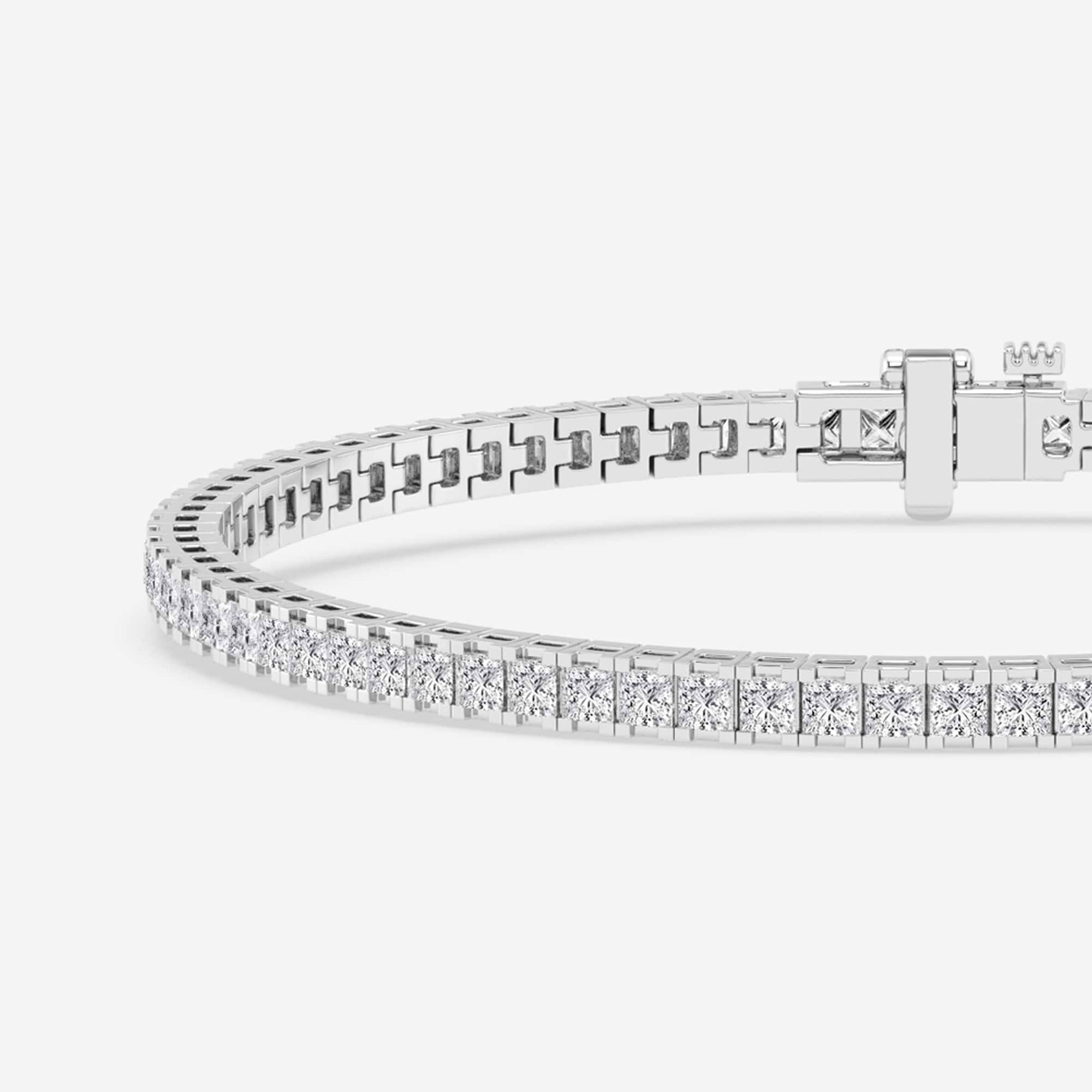 This Princess-Cut Lab-Grown Diamond Tennis Bracelet commands attention with its striking design. Crafted in refined 18K white gold, its clean lines and brilliant sparkle embody contemporary sophistication. It represents an ideal blend of timeless elegance and responsible artistry.